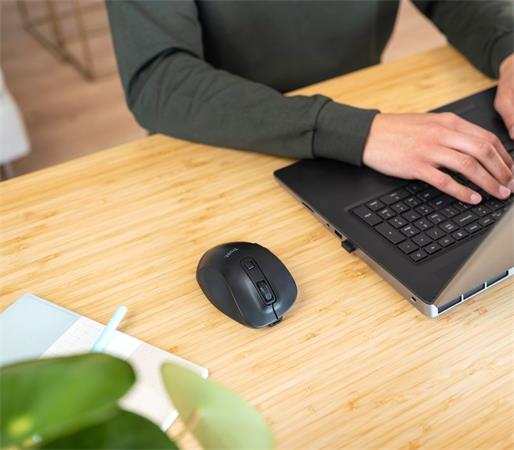 Ívelt kialakítású egér az egész napos kényelem és optimális irányítás érdekében.