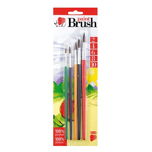 | Név | Ecsetkészlet Ico póniszőr fanyelű 5 db-os klt. 2/4/6/8/10 festett |