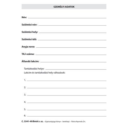 | Név | Egészségügyi könyv – Betétlap 115×160 mm |
