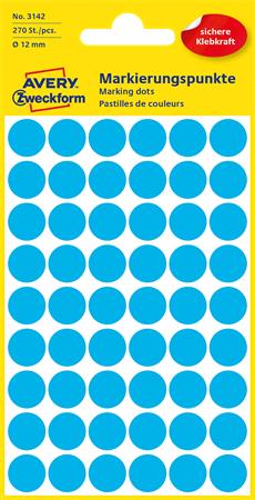 | Név | Etikett, 12 mm, kör, AVERY ZWECKFORM, kék, 270 etikett/csomag |