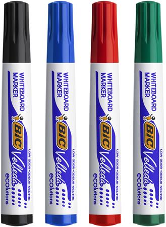 Flipchart- és táblamarker készlet, 1,4 mm, kúpos, BIC” Velleda ecolutions”, 4 különböző szín