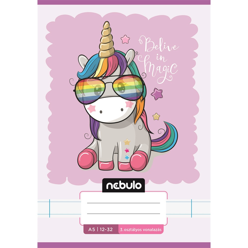 A/5-ös tűzött iskolai füzet 3. osztályos vonalazással, 32 lapos (12-32). 16 db füzet (8 különböző cuki minta, azaz 2db/minta) van egy csomagban. 70 g-os füzetlapok és 200 g-os műnyomó borító fényes fóliával.