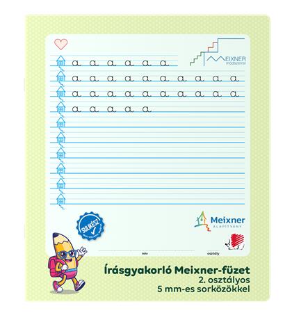 Írás gyakorló füzet a 2. osztályosok számára, amely a Meixner Alapítvány együttműködésével és ajánlásával jött létre. Speciális vonalazású és kialakítású füzet alkalmas a Meixner-féle írás tanulás elsajátítására és gyakorlására.