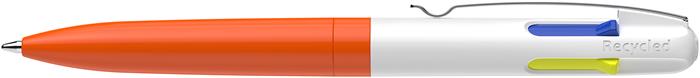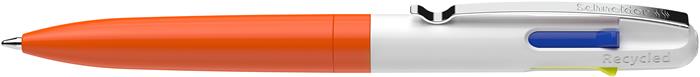 Golyóstoll, 0,5 mm, nyomógombos, négyszínű, SCHNEIDER “Take 4 Neon”, narancs-fehér