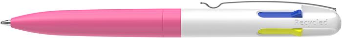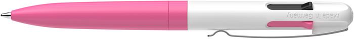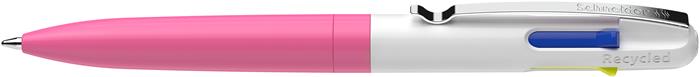 Golyóstoll, 0,5 mm, nyomógombos, négyszínű, SCHNEIDER “Take 4 Neon”, rózsaszín-fehér