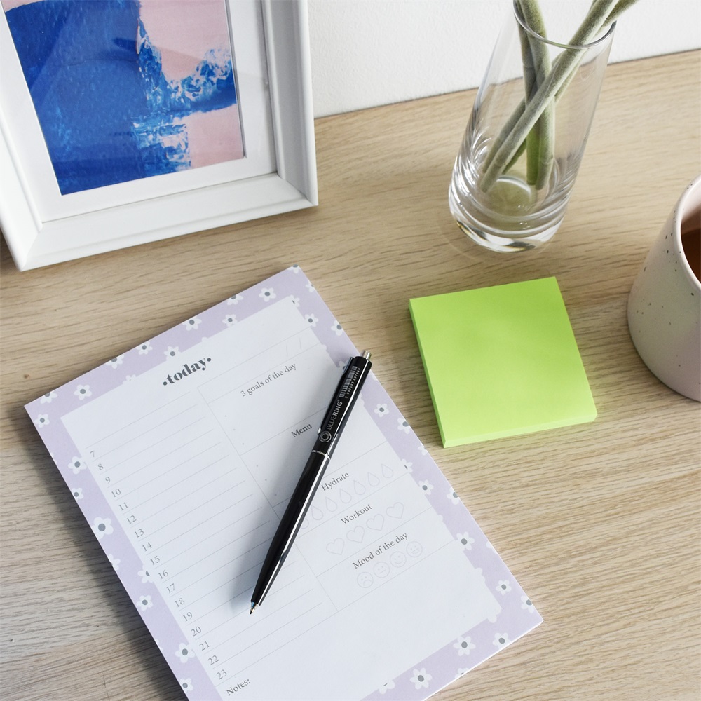 Nyomógombos golyóstoll. Fém klipsz és nyomógomb. Írás színével megegyező színű tolltest. Írásvastagság 0,5 mm.