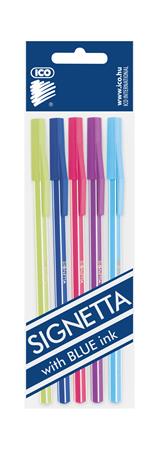 Golyóstoll készlet, 0,7 mm, kupakos, 5 különböző testszín, ICO “Signetta Mix”, kék