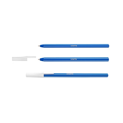 - műanyag, eldobható golyóstoll biztonsági kupakkal