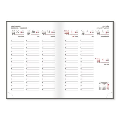 - Extra: sarokperforált naptárrész, oromszegővel, jelzőszalaggal ellátva