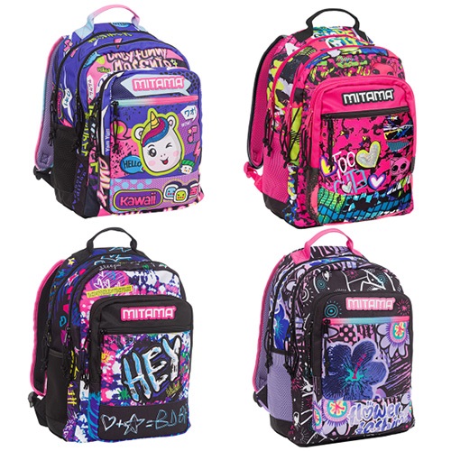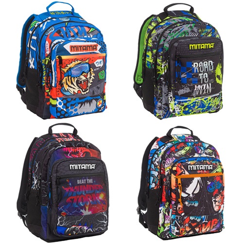 Fedezze fel a MITAMA ergonomikus iskolai hátizsákot, amely tökéletes társ a mindennapi iskolai kalandokhoz. A színes és vidám minták minden gyermek számára izgalmas és szórakoztató viseletet biztosítanak, miközben az ergonomikus kialakítás csökkenti a háton és a vállon lévő nyomást.