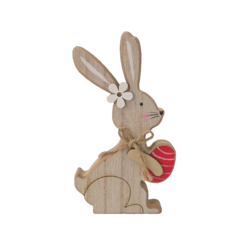 Húsvéti dekor fa nyuszi piros tojással 9×15 cm