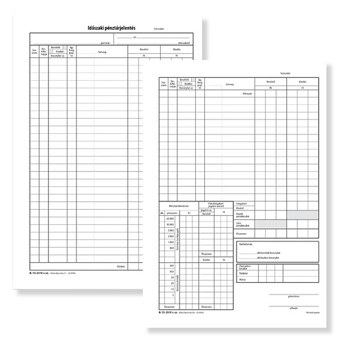 | Név | Időszaki pénztárjelentés 25×2+2 lapos tömb A/4 álló |