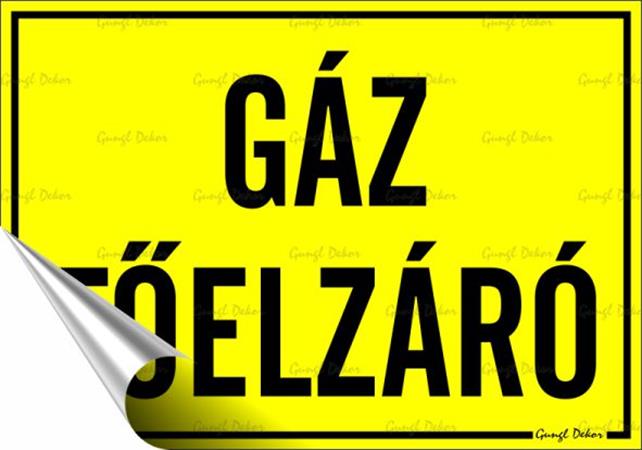 | Név | Információs matrica, 11,6×16,6 cm, "Gáz főelzáró" |
