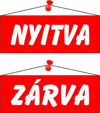 | Név | Információs tábla, 22×8,5 cm, kétoldalas, "Nyitva/Zárva", piros |