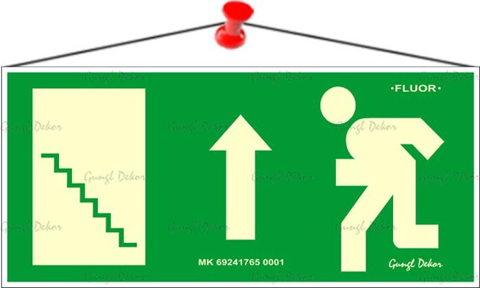 | Név | Információs tábla, 25×11,5 cm, fluoreszkáló, utánvilágítós, "Menekülési irány fel, lépcső balra" |