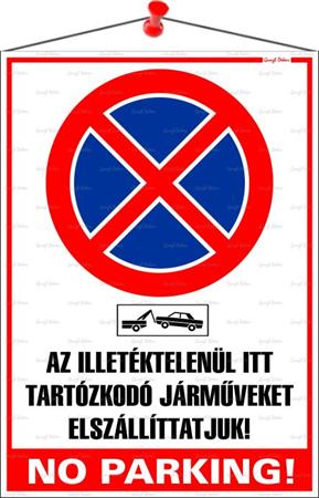 | Név | Információs tábla, 35×25 cm, "Az illetéktelenül itt tartózkodó járműveket elszállíttatjuk! No parking!" |