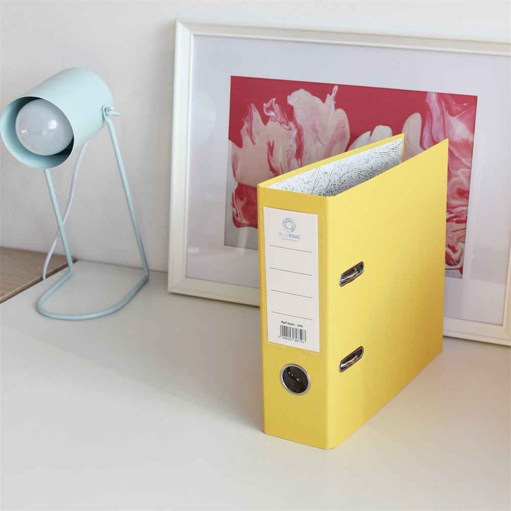 Emelőkaros iratrendező általános használatra. Kívül PP, belül fehér karton borítással, kihúzólyukkal. Cserélhető gerinccímke a feliratozáshoz. Tárolókapacitás 500 lap (A5 80gr.). A terméket lapra szerelve szállítjuk, a mellékelt emelőkaros szerkezet bepattintása gyors és egyszerű, 5 másodperc alatt elvégezhető és iratrendezőnk máris használatra kész! Katalóguskód: 39183