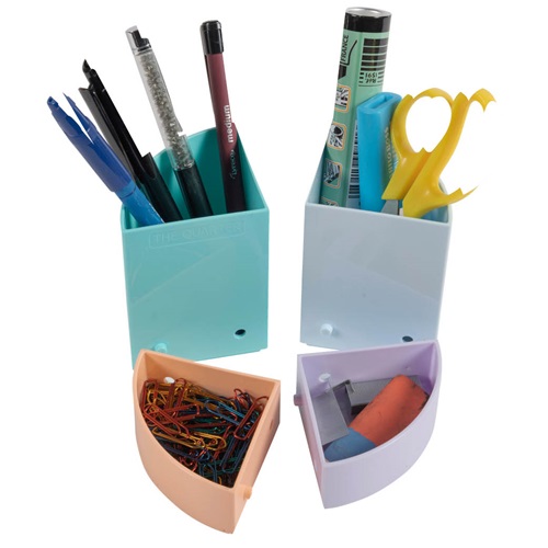 - 4 összekapcsolható negyedből áll, melyet összerakva köralakú írószertartót kapunk