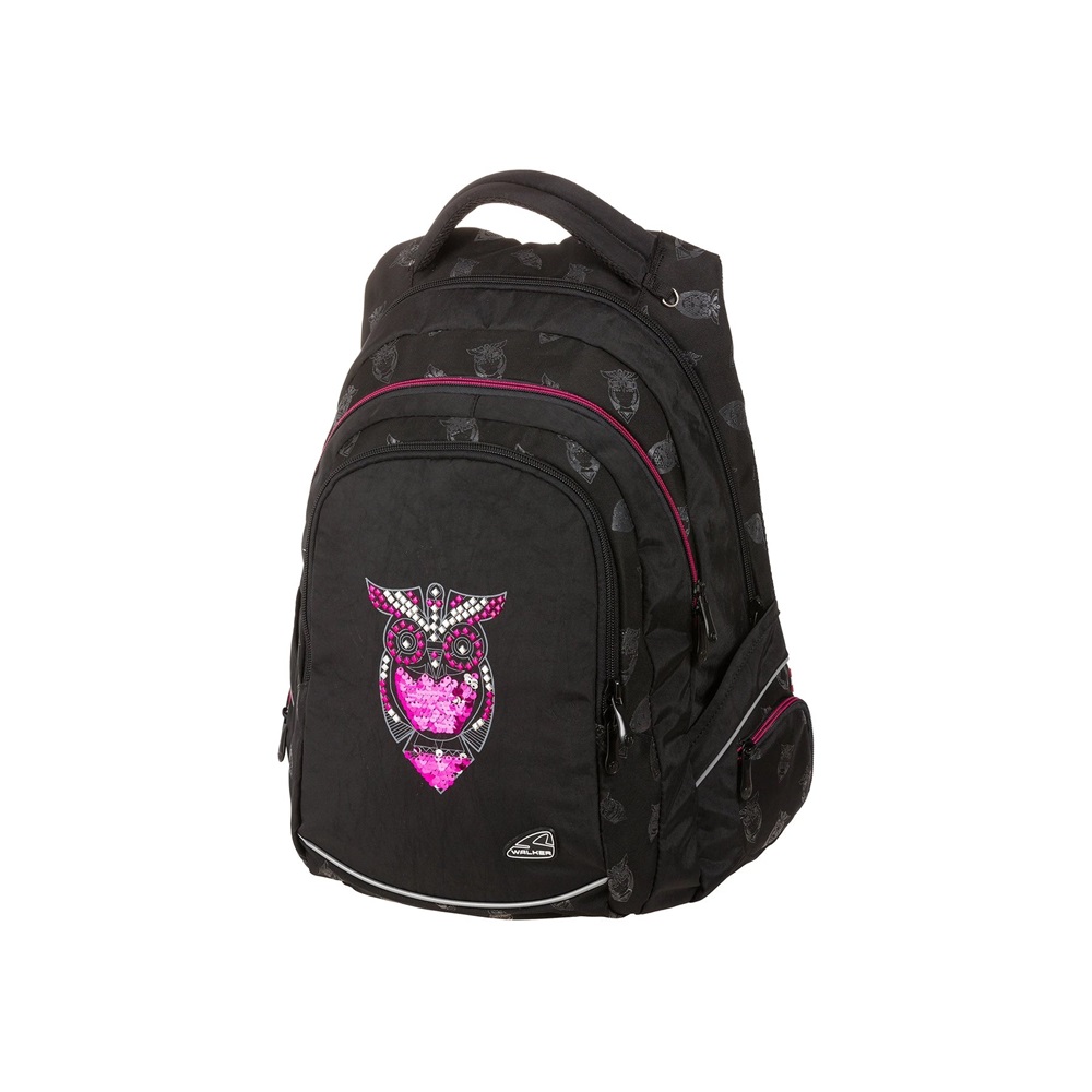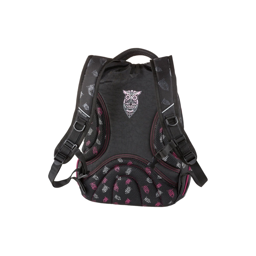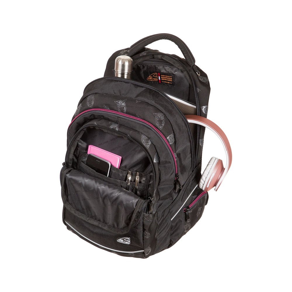 Az iskolatáska tartalma megfelelően védett. A kiváló minőségű, vízlepergető anyag távol tartja az esőt és a szelet. Ha azt mondjuk a tanárnak, hogy a házi feladat sajnos elázott, az mostantól rossz kifogás! Az iskolai hátizsák belseje egy nagy fő rekeszből áll, rugalmas belső elosztásokkal és egy további középső rekesszel. Kívül egy elülső rekesszel, rendezővel is rendelkezik. Tartalmaz egy cipzáras hálós zsebet, egy csúszós zsebet és nyílásokat a tollak számára. Gondoltunk oldalzsebekre is az italosüvegek számára, valamint hordfogantyúra vagy akasztóhurokra.