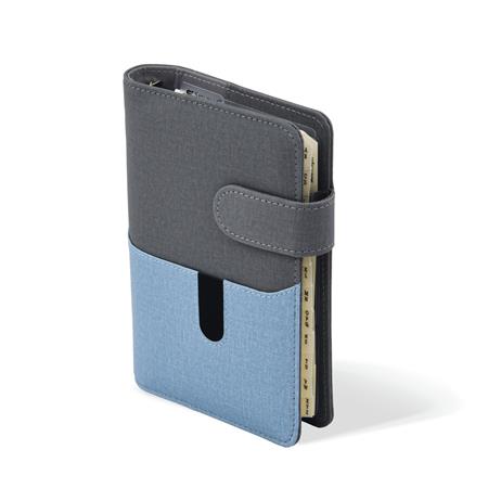 Kalendárium, gyűrűs, betétlapokkal, “L”, műbőr, SATURNUS, “229”, szürke-kék