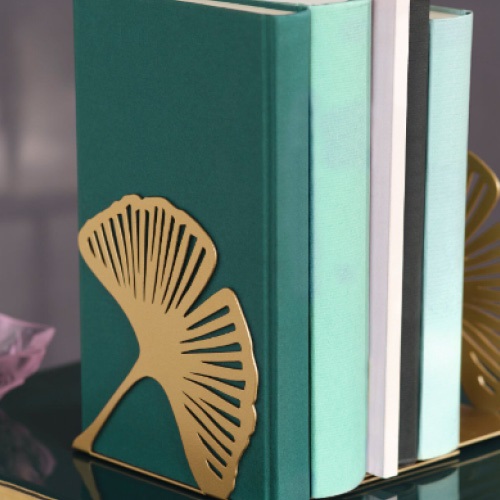 - Design: A könyvtámaszok arany színű, fém kivitelben készültek, és ginkgo levél mintával díszítettek, ami modern és elegáns megjelenést biztosít.
