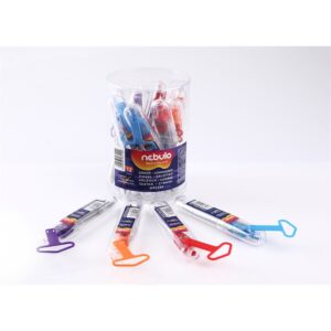 Körző fém lábakkal, 2 mm-es grafitheggyel. A véletlen szúrást akadályozó műanyag dobozban 2 póthegy is található. Katalóguskód: 32245