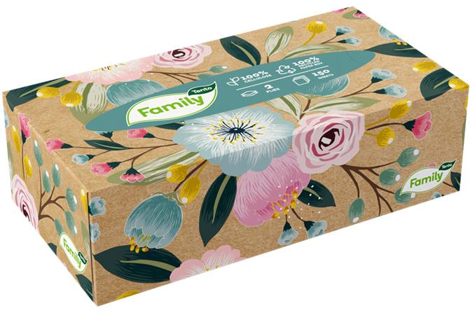 A Tento Family termékcsaládot azok számára ajánljuk, akik egyszerű, de jól használható higiéniai megoldásokat keresnek az otthonukba. A Tento Family kozmetikai kendőket többféle kiszerelésben, elbűvölően kialakított újrahasznosított papírból készült dobozokba csomagoljuk. A dobozokat úgy terveztük, hogy otthonában bárhová elhelyezhesse őket, asztalra éppúgy, mint a konyhapultra.