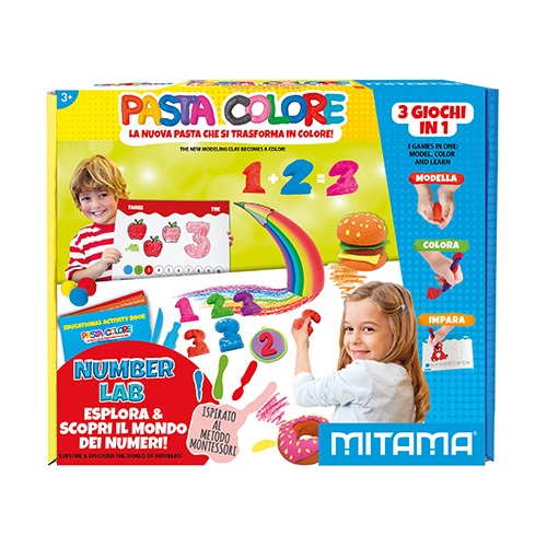 - A Number Lab szett tartalma: 5 db színes gyurma (5*40g), 10 db számforma (0-9-ig), 1 db sodrófa, 1 db kicsi műanyag kés, 1 db tasak kiszáradás ellen, 1 db oktatófüzet (olasz & angol nyelvű)