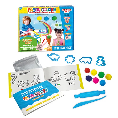 - A Color Lab szett tartalma: 7 db színes gyurma (7*30g), 4 db forma, 1 db sodrófa, 1 db kicsi műanyag kés, 1 db tasak kiszáradás ellen, 1 db oktatófüzet (olasz & angol nyelvű)