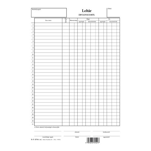 Leltár árváltozásról szabadlap A/4 álló