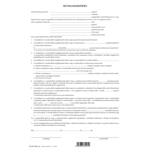 Munkaszerződés 3 lapos garn. A/4 álló 31