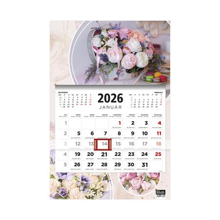 Naptár, speditőr, három hónapos, egy tömbős, TOPTIMER, “Virágok”