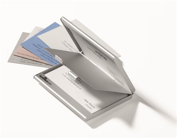 | Név | Névjegykártyatartó tárca, fém, 20 db-os, DURABLE "CARD BOX DUO", ezüst |