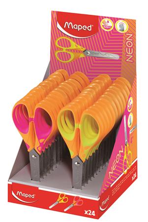 Olló, display, iskolai, 13 cm, MAPED “Soft Neon”, vegyes színek