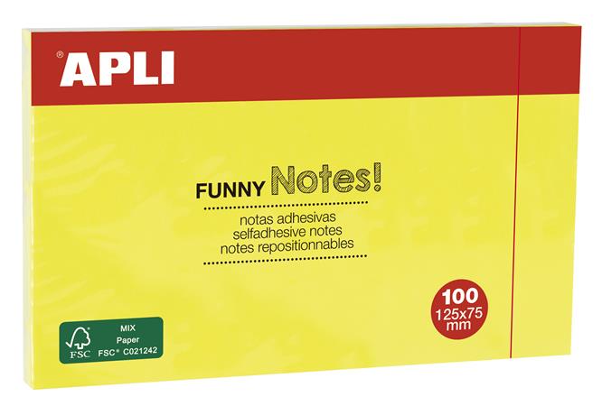Öntapadó jegyzettömb, 125×75 mm, 100 lap, APLI “Funny”, sárga