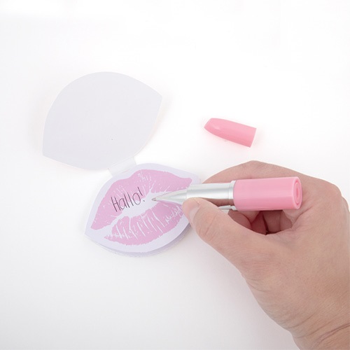 - Fesztivál hangulatú, stílusos jegyzettömb, rúzs formájú tollal