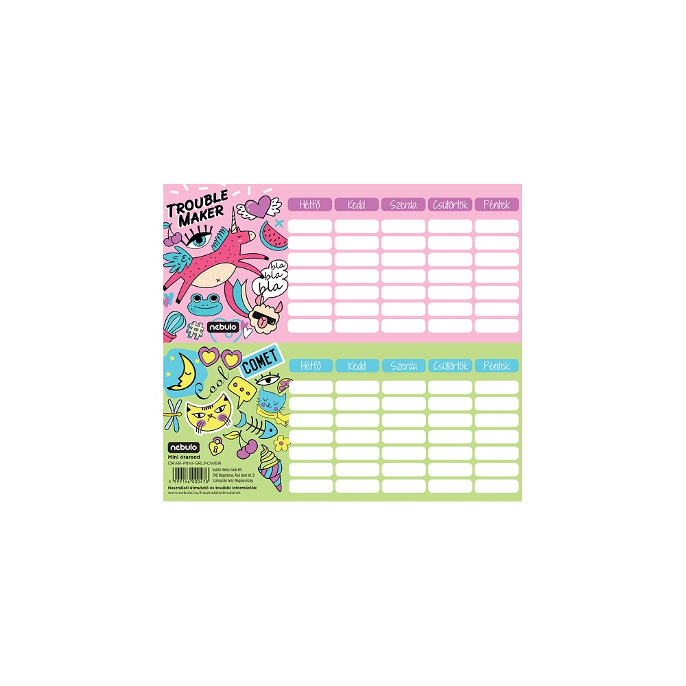 Órarend egylapos Girl Power, 25 db/csomag, Nebulo
