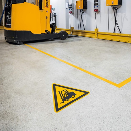 - Raktárak és gyárak közlekedő folyosóinak és feljáróinak megbízható és hosszú távú jelölésére.