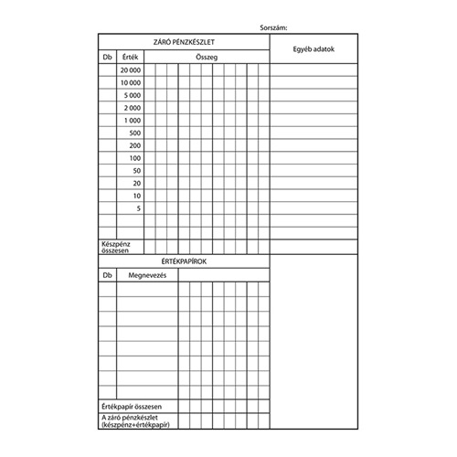 | Név | Pénztárzárás 25×2+2 lapos tömb A/5 álló |