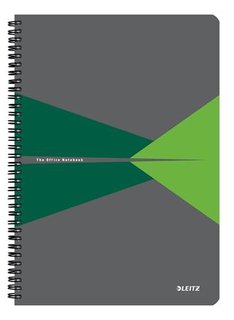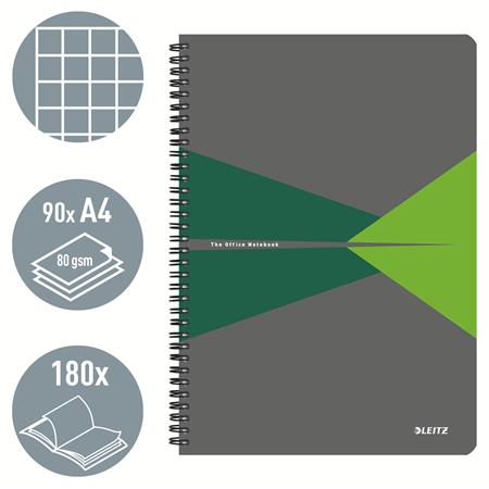 Spirálfüzet, A4, kockás, 90 lap, PP borító, LEITZ “Office”, szürke-zöld