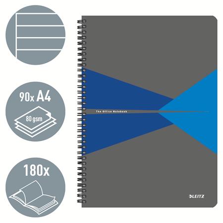 Spirálfüzet, A4, vonalas, 90 lap, laminált karton borító, LEITZ “Office”, szürke-kék