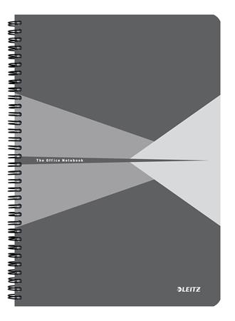 Spirálfüzet, A4, vonalas, 90 lap, PP borító, LEITZ “Office”, szürke