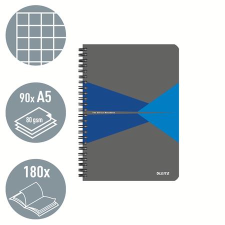 Spirálfüzet, A5, kockás, 90 lap, PP borító, LEITZ “Office”, szürke-kék