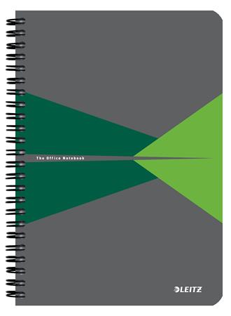 Spirálfüzet, A5, vonalas, 90 lap, laminált karton borító, LEITZ “Office”, szürke-zöld