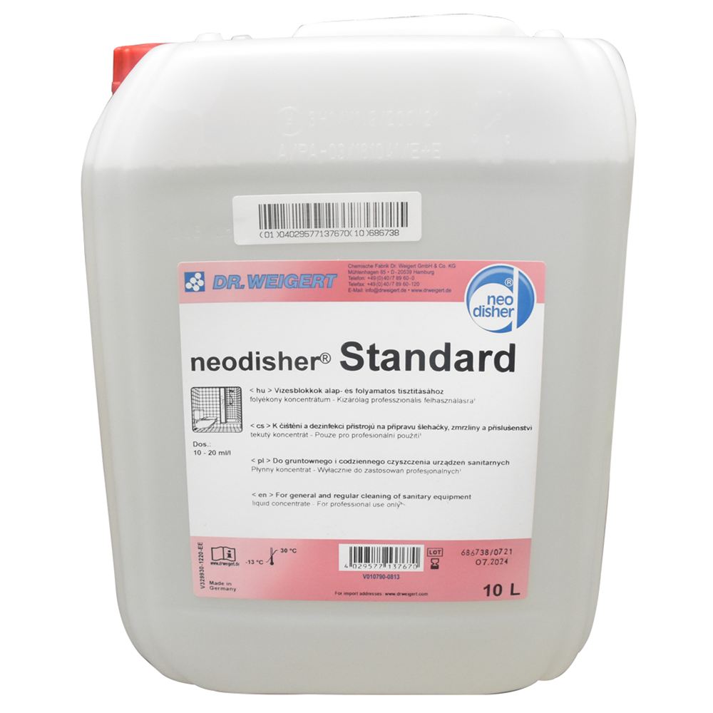 Szanitertisztító 10 l Neodisher Standard termék alkalmazásakor ügyeljen a biztonságra! Használat előtt mindig olvassa el a címkét és a használati útmutatót!