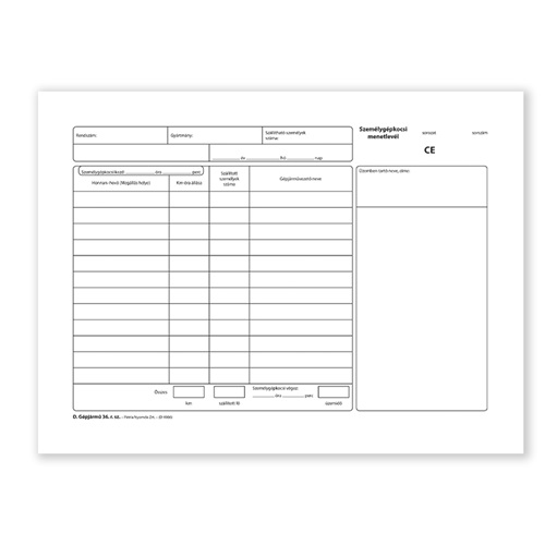 | Név | Személygépkocsi menetlevél 100 lapos tömb A/4 fekvő |