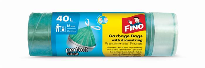 Szemeteszsák, önzáró szalagos, 40 l, 15 db, 55×62 cm, 14 µ, FINO “Perfect Close”, zöld