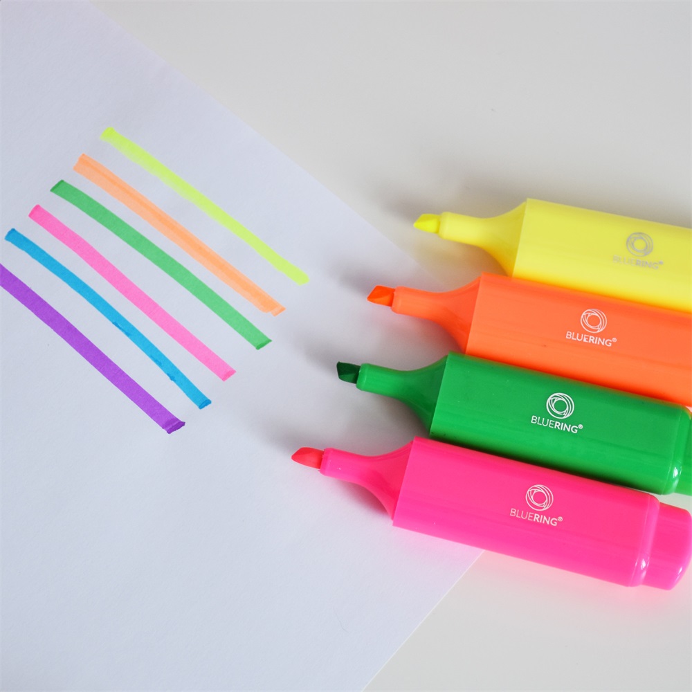 Speciális fluoreszkáló festékkel töltött szövegkiemelő. A kiemelt szöveg fénymásolható,faxolható. Klippel ellátott kupak, mely légmentesen zár. Festék színével megegyező kupak és testszín. Vágott csúccsal, 5 féle élénk színben és 2 féle készletben.Vonalvastagság: 1-2 mm (íróhegy élével), 3-5 mm (íróhegy lapjával). 12 db/doboz, 144 db/gyűjtő, 864 db/karton Katalóguskód: 1425