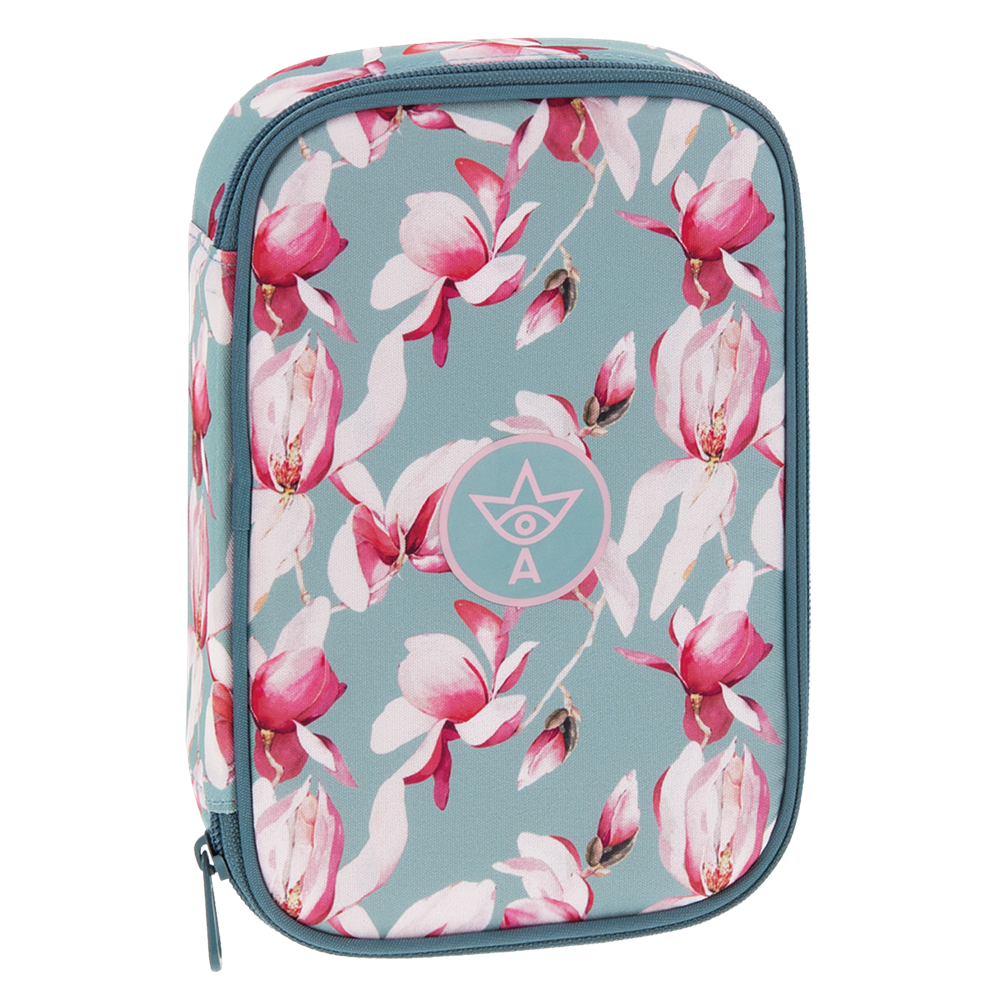 Többszintes, töltetlen, cipzáras tolltartó. Belül textillel bevont merev lapokkal, gumis kialakítással 30 ceruza számára az írószerek tárolásához és egy cipzáras belső zsebbel.