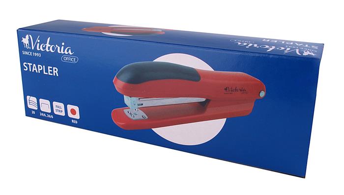 Tűzőgép, 24/6, 26/6, 20 lap, VICTORIA OFFICE, “Full-Strip”, piros